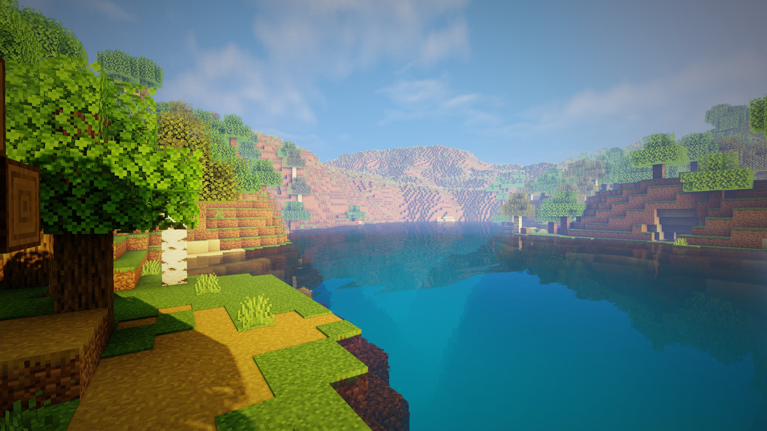 Where UShader shines most is in the sky, with some very convincingly shaped and coloured cloud formations and a bright, realistically indistinct sun that bathes the landscapes below in bright, natural-feeling light. I think the shadows leave a bit to be desired overall when compared to SEUS Renewed, so there's a bit of a tradeoff there. But this is still a very respectable choice of shader pack for any player who can run it (we're probably looking at mid-to-high end PCs with this one).
