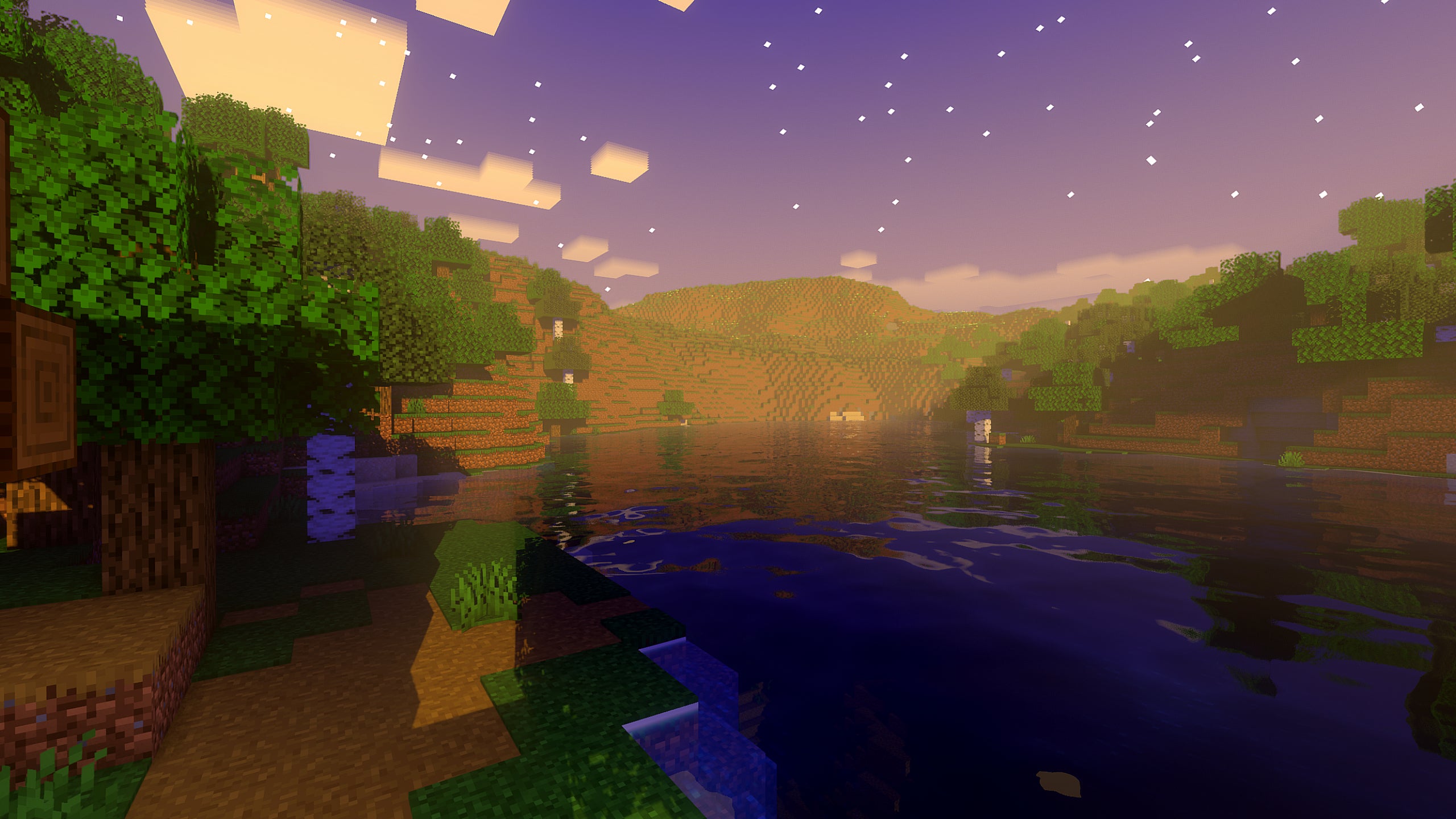 Bright skies and wonderful Nostalgia-esque Story Mode clouds are the highlight of these shaders for me, and the nights, while very simple compared to the magnificent auroras of many other shader packs, hold a real charm of their own. I also quite like how the stars remain visible for a longer portion of the day than you might expect, so that the warm dawns and dusks are permeated by an eye-catching star-filled sky. Perhaps not the most realistic option, but I really love how it looks.