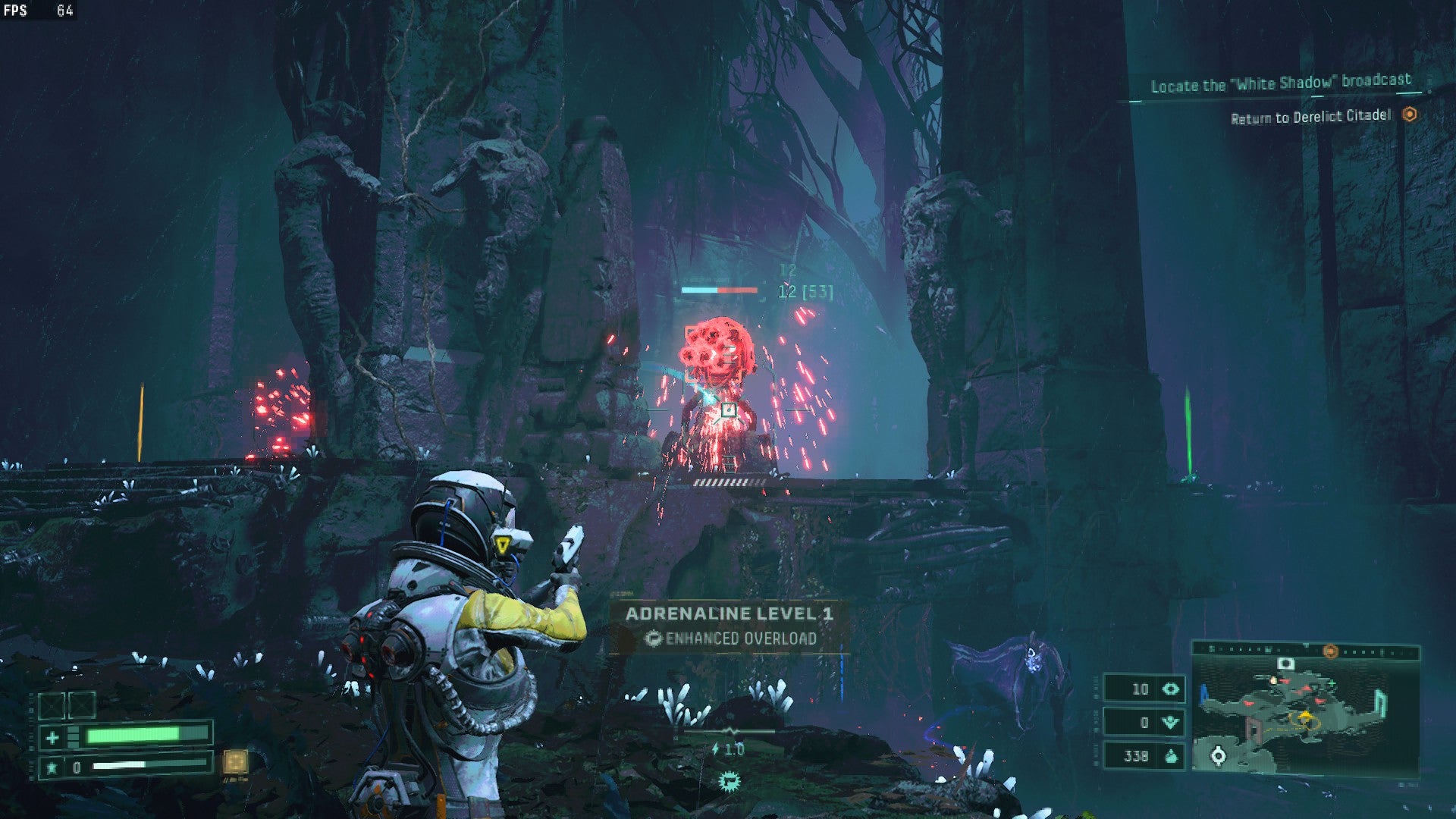 It's gratifying to find, then, that Climax Studios’ PC port is no less essential. At least that is as long as you have a machine with enough grunt to keep up with its luminescent mayhem. I have to admit, I fell a little short in this respect, equipped with a PC that merely matched the recommended settings, and it came as no surprise that I had to tune the graphical bells and whistles down a notch to maintain a solid frame rate. That’s fine, but if you have to venture further down the scale into the ‘Medium’ settings, the drop in quality is steep, and the lively environments lose a lot of their shine. While I’m usually no stickler for performance or fidelity, Returnal’s alien textures and eye-scorching particles deserve to have the dials turned up to max.