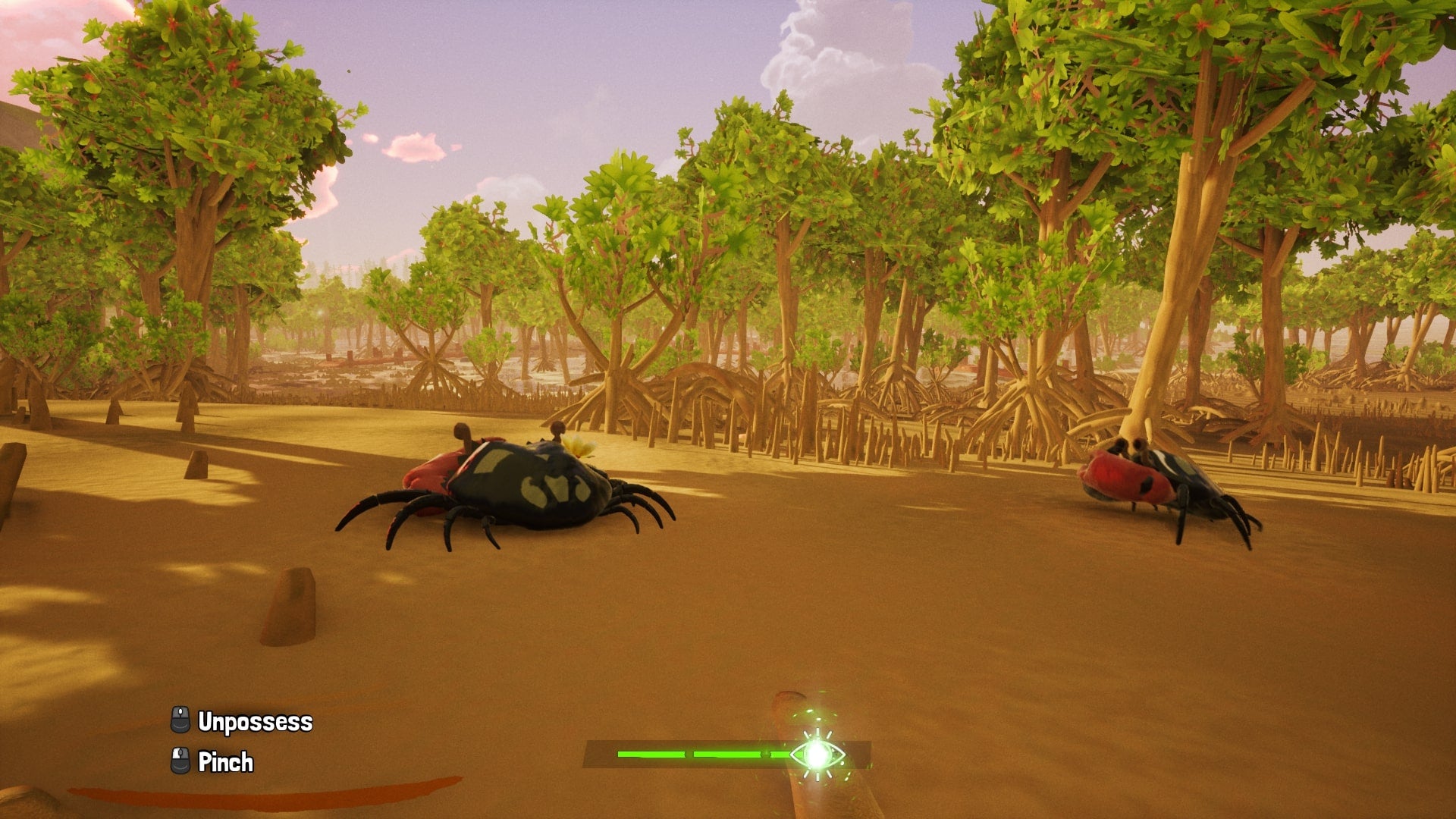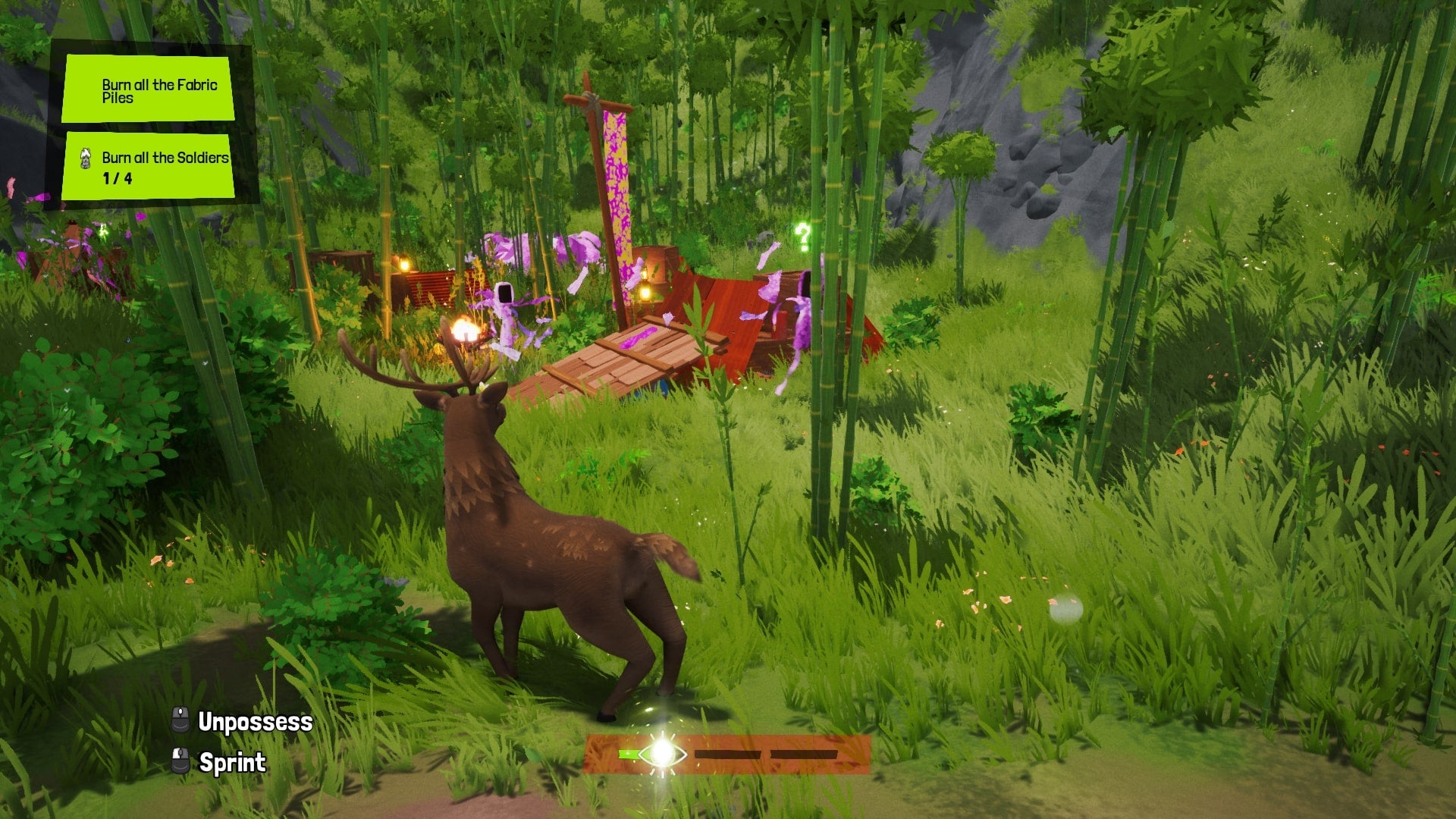 I recommend playing with a controller over keyboard and mouse, but regardless of which one suits you, the soul-jumping feels incredibly fluid. You can use your power from far away so there’s no need to try to sneak up on an animal to possess it. It’s as easy as aiming with LB and pressing RT to launch yourself into the critter. The only thing you need to keep an eye on is a magical bar at the bottom of the screen that depletes over time. When it empties, you’re launched out of the animal’s body like you're being bucked by a horse.