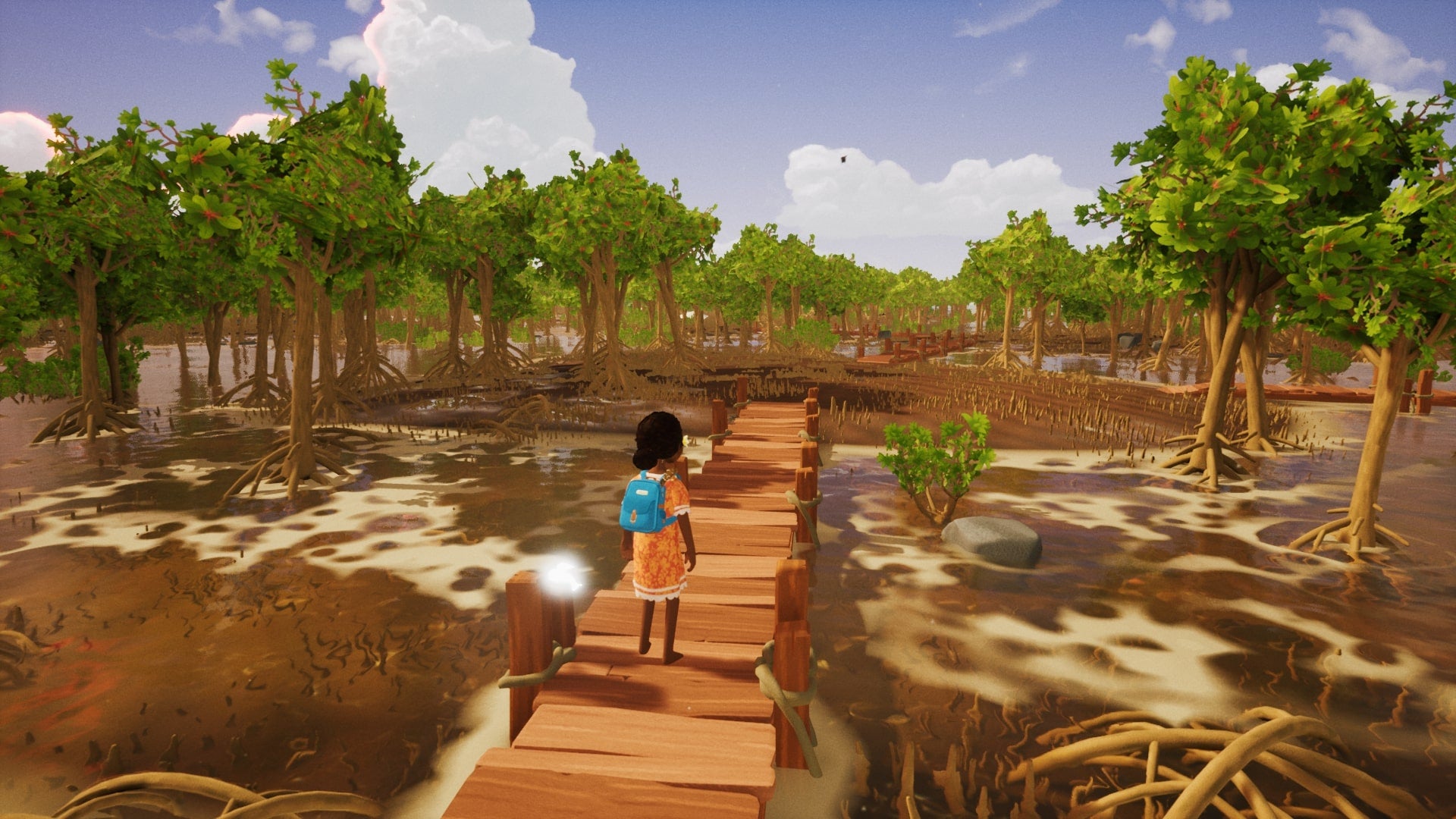 There are the sounds of gentle waves, crickets chirping, birds squawking, and a light breeze making the trees rustle. There are mountains jutting out further inland, and I can see thickets of trees as well as swamp lands further along the coastline. As I continue along the winding river, Tchia's island feels almost like a collection of mini-biomes, each with different plants and animals. It seems strange to see so many different terrains and wildlife, but after reading the New Caledonia Wiki page I found out the island is known for its micro-climates and exceptional biodiversity - cool!